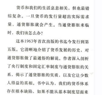 书里不仅讲了货币的产生、货币价值等货币理论基础知识,更着重讲了政府控制货币发行带来通货膨胀的危害,带来很多启发。推荐分享对经济学专业或者感兴趣的朋友下载阅读~